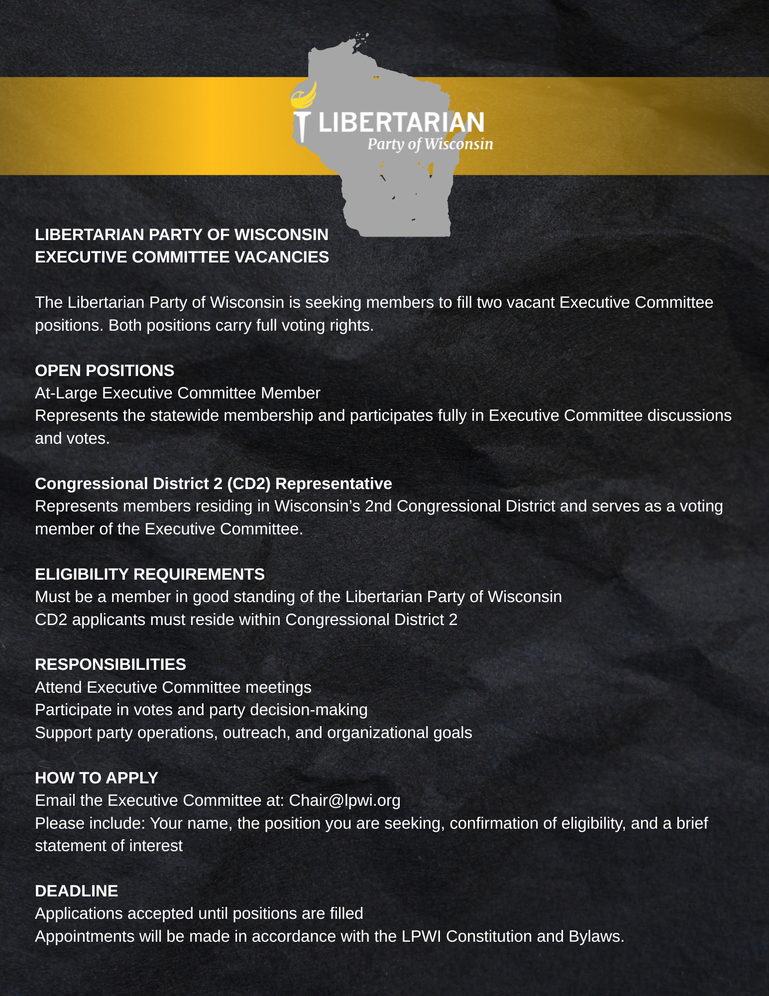 Libertarian Party of Wisconsin Executive Committee vacancies